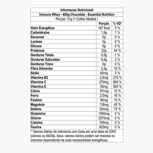 Seja o primeiro a avaliar “Immuno Whey 465g Essential Nutrition Chocolate”