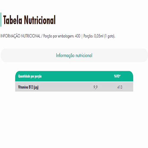 > Fornece 413% da ingestão diária recomendada de vitamina B12 em apenas uma gota;